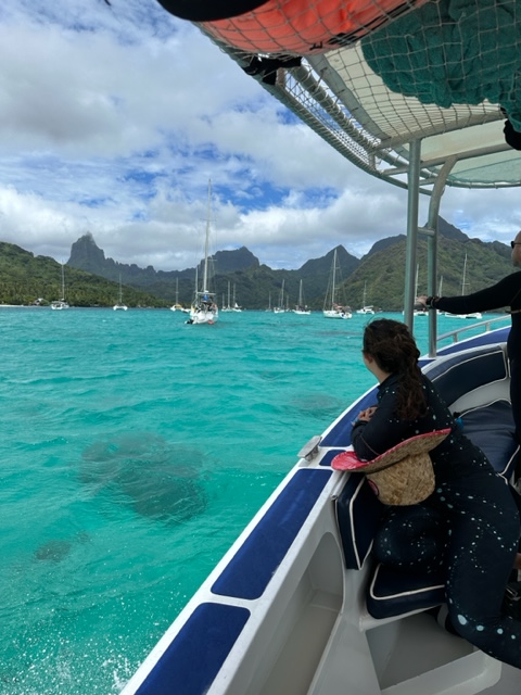 Maybe you’d like to take a break from the water and explore the island on foot! Visit the gorgeous Belvedere overlook where you can see two magnificent bays framed by Mo’orea’s impressive mountain peaks. Or, sunbathe at the local’s favorite spot – a long, long white stretch of beach with broken seashells and coral amongst old growth palm trees with a colorful shallow reef within the break wall. Snorkel here with the electric-colored corals, or stay dry and do some black pearl shopping. Today is a choose your adventure kind of day. Transportation included – Tim and Sara will happily drop you off and pick you up, but additional costs for chosen activities today (i.e. scuba diving, motor-boat rental, black pearl souvenirs) are extra and separate from total trip price.
