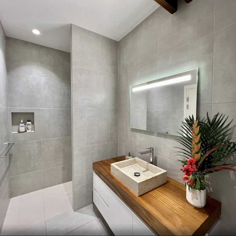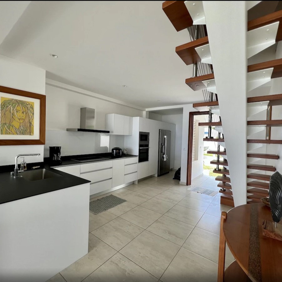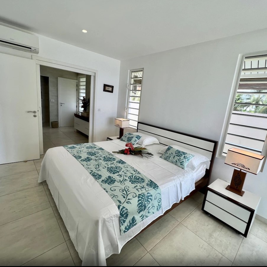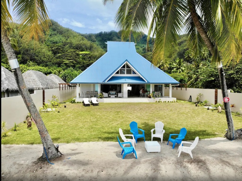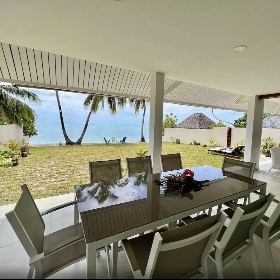 The Barefoot Bliss house is an upscale gated property in a quiet area of Mo’orea, known for its powder soft beaches and gorgeous lagoon views. The brand new 6-bedroom, 4-bathroom house has air-conditioning in the bedrooms and a beautiful unobscured view of the sea. Amazing snorkeling right from the beach, where we’ve seen turtles, eagle rays and pink whiptail rays!